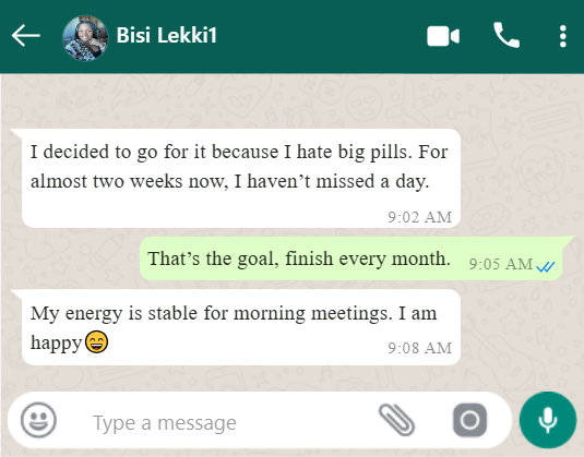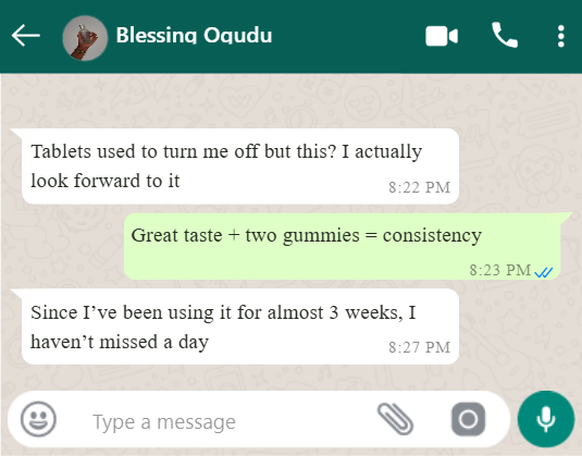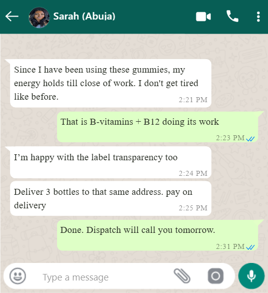 All that constant tiredness and stress wey I think say na normal? E don clear. These gummies dey give me energy and fresh confidence round the clock.